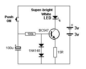 @nathan This circuit diagram is for a simple LED flashlight controlled by a push button switch. Here's how it works:
